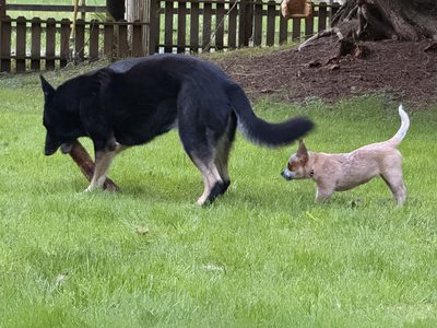 - Rhubarb is an Australian Cattle Dog, also known as a Red Heeler.